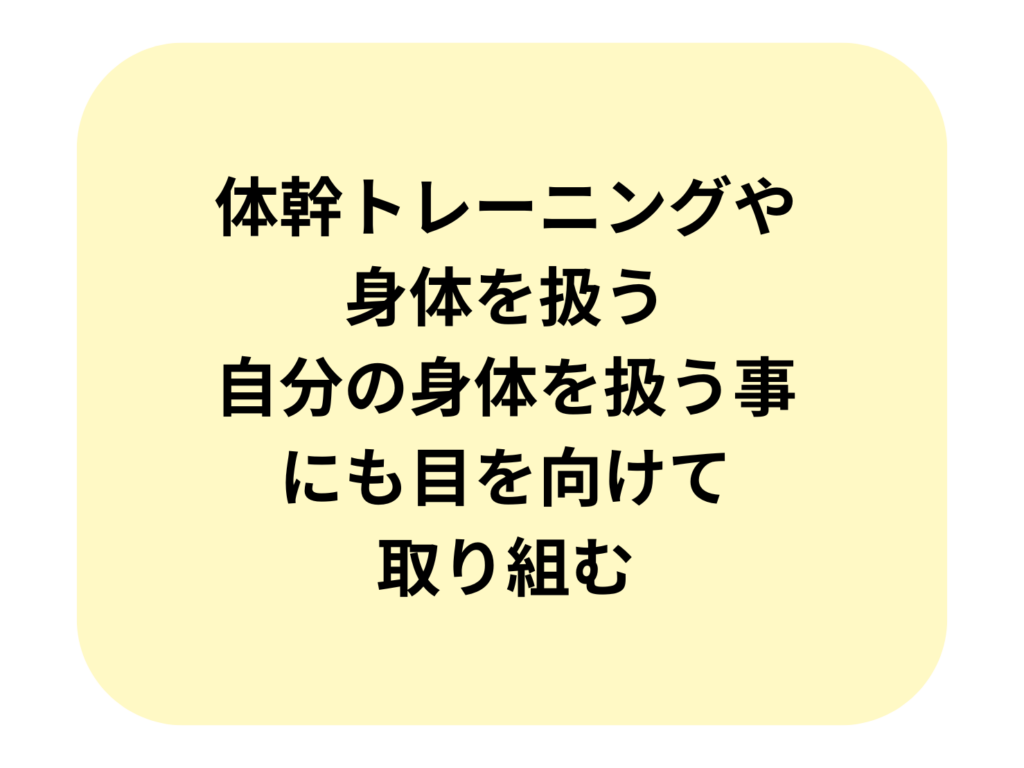 その他、チームで行っている動きづくりや、体幹トレーニングを行うことで、フィジカル面でもレベルアップ目指します。
